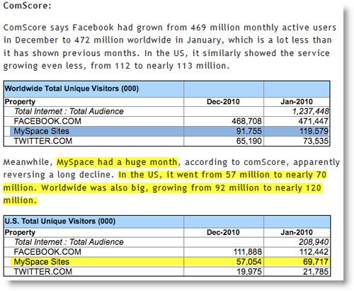 Looking into the statistics, MySpace keeps growing. It is not as significant as the previous years but its growth is still ongoing.