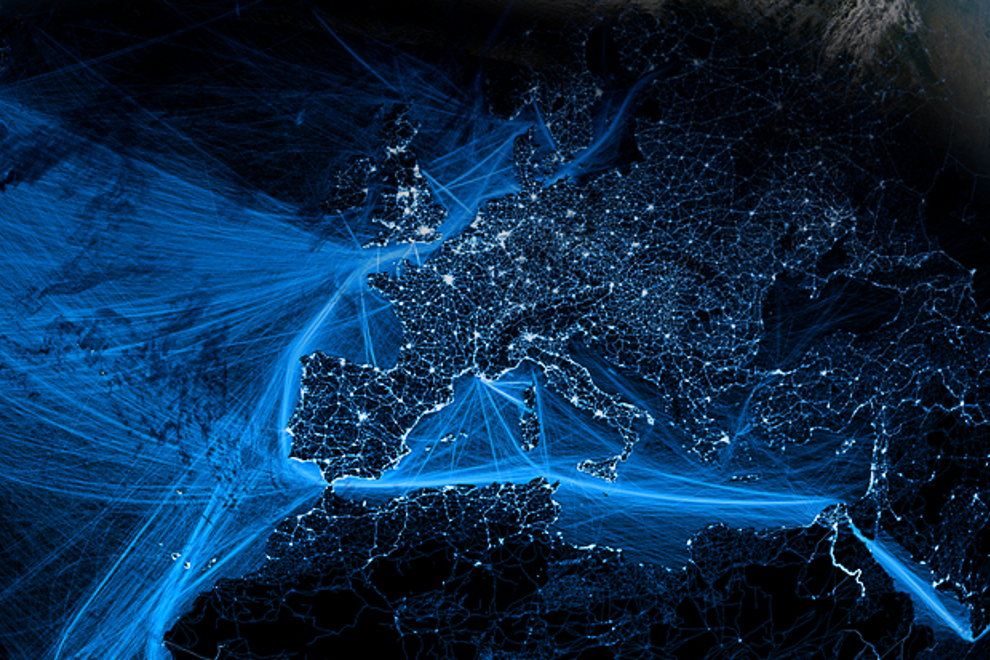 Nous avons tous été émerveillés, un jour ou l’autre, par les photos de la Terre vue de l’espace. Notamment celles qui permettent de deviner les contours de nos continents au moyen unique des lumières nocturnes de nos mégalopoles. Fruit de la domination et de l’influence de l’homme sur son environnement, cette vision scintillante de la planète participe de l’anthropocène qui a inspiré l’anthropologue canadien Felix Pharand-Deschenes du site Globaia.org pour réaliser de magnifiques visualisations de la Terre à partir de données publiques : villes, routes, voies ferrées, lignes aériennes, lignes électriques, câbles internet…