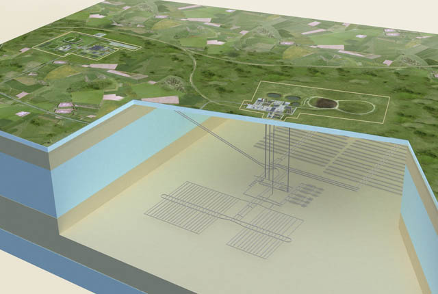 Cigeo, modélisation de la zone d'accueil des déchêts, vue en surface. ©ANDRA