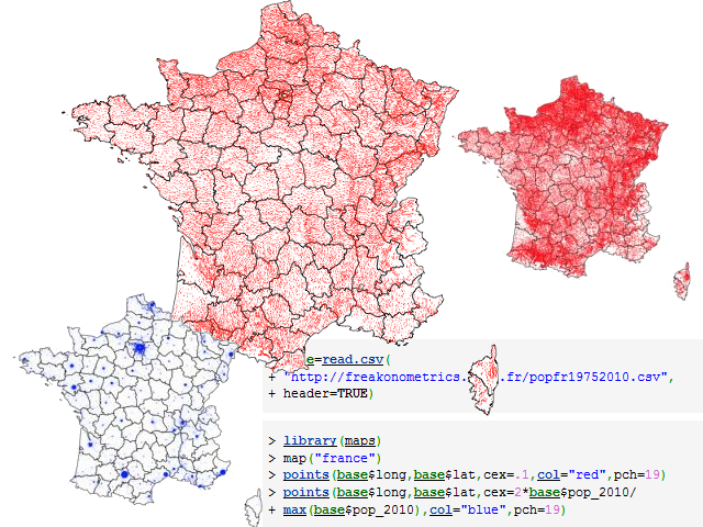 A priori, le premier lien de notre veille hebdomadaire ne mange pas de pain numérique, ne pulvérise aucune rétine, n’estomaque pas le lecteur en mal d’awesomeness. Mais il est rudement pratique. Grand merci donc à Arthur Charpentier – plus connu (mais sans doute pas assez) via son blog Freakonometrics – et à Ewen Gallic, un jeune Rennais étudiant à Montréal (c’est dire s’il patauge dans le bon Open Data) qu’il relaie cette semaine. Ce précieux jeu de données [en] (“dataset” dans la langue de Simon Rogers) est des plus utiles pour les data-journalistes que nous sommes, puisqu’il rassemble en un fichier CSV de 24 Mo les coordonnées GPS des 36 000 communes françaises (API Google Maps et GeoHack) et la population de ces communes entre 1975 et 2010 (Insee et travail d’estimation de population personnel par rapport aux données de l’Insee pour prendre en compte les fusions et/ou les scissions de communes durant ces 35 ans). Avis aux amateurs, donc !